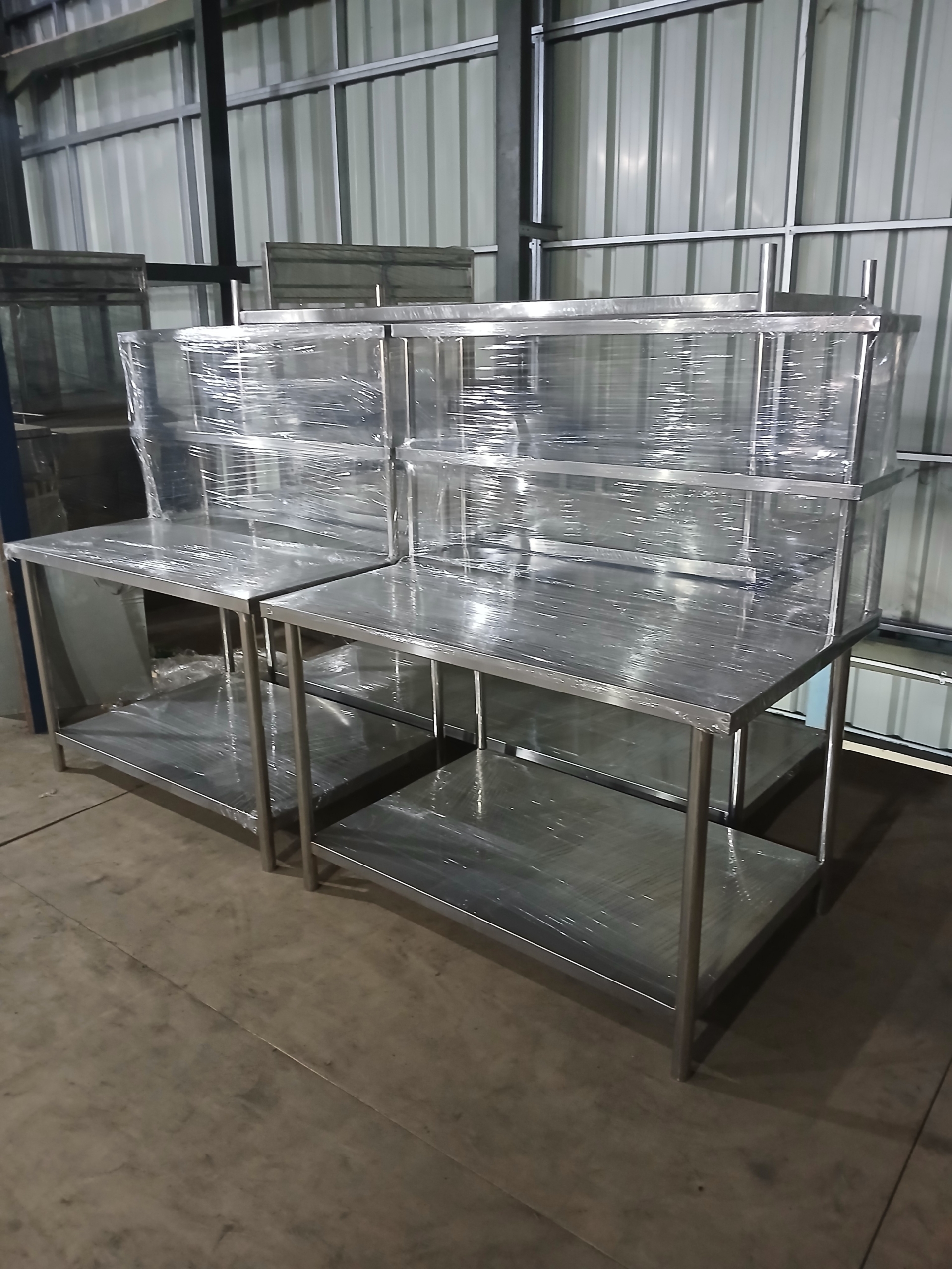 Meja Kerja Stainless Steel dengan rak Susun