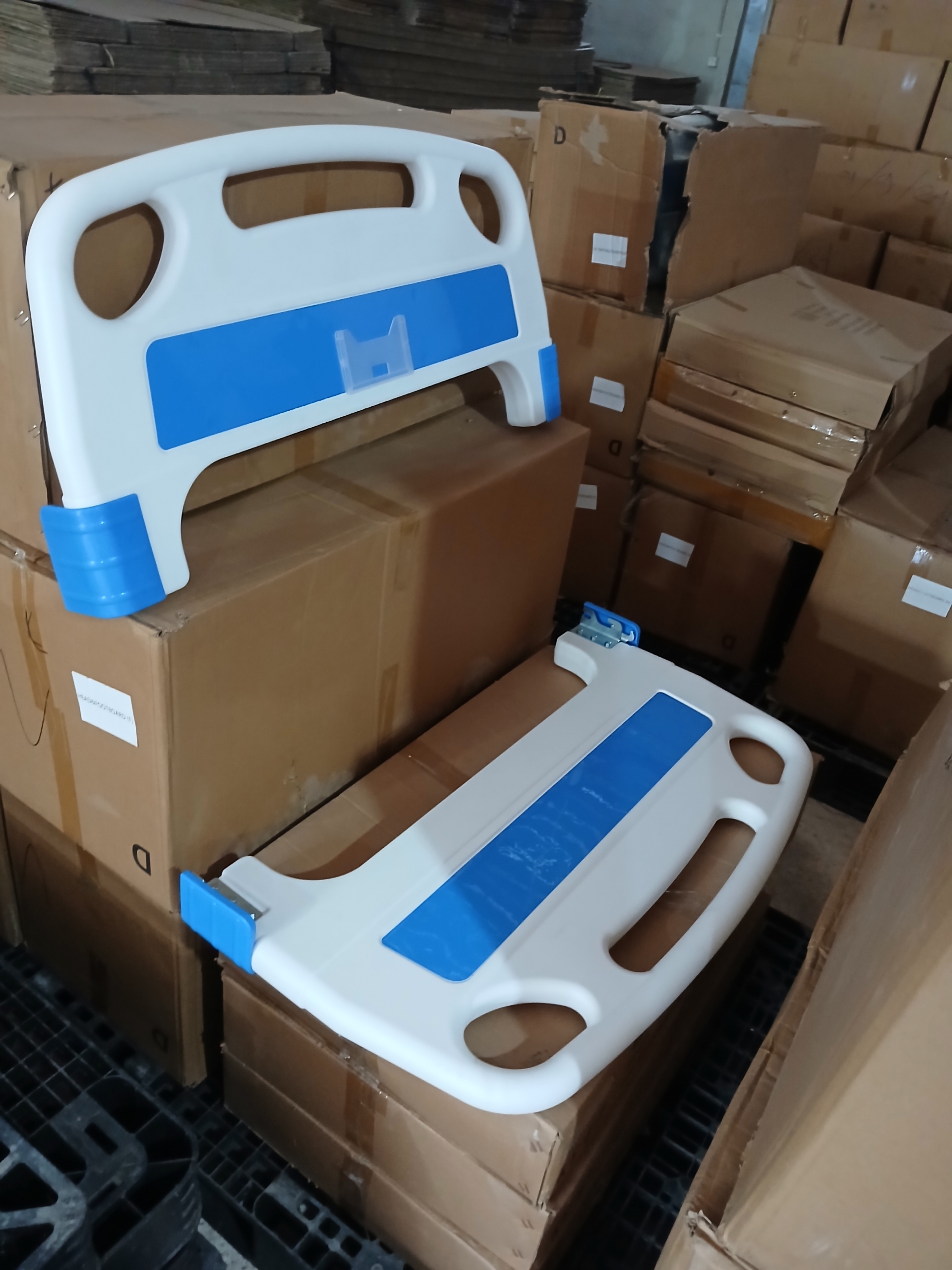 Suku cadang head dan foot board (kepala dan kaki ranjang) untuk ranjang pasien, yang terbuat dari bahan ABS (Acrylonitrile Butadiene Styrene).